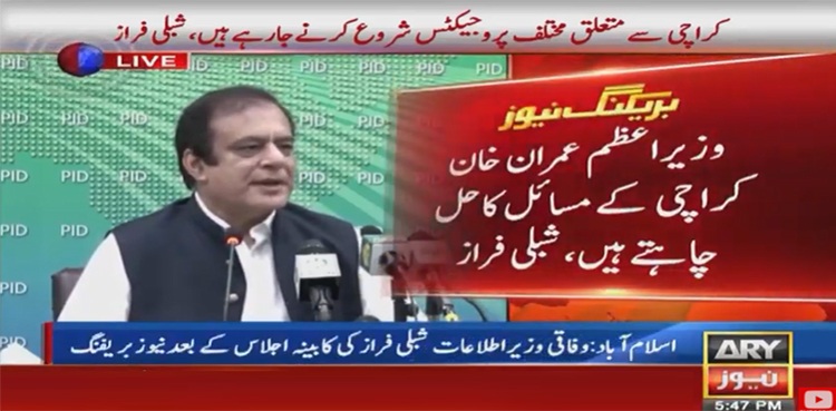وفاقی وزیر اطلاعات شبلی فراز نے کہا ہے کہ وزیراعظم عمران خان کراچی کےمسائل کاحل چاہتے ہیں،وزیراعظم جمعےکےدن کراچی جارہےہیں۔