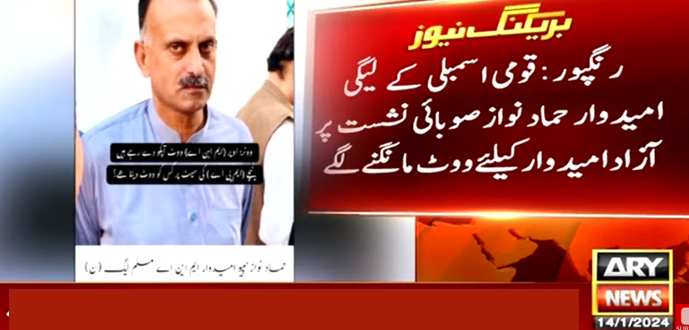 اے آر وائی نیوز کے مطابق قومی اسمبلی کے حلقہ این اے 175 سے لیگی امیدوار حماد نواز ملحقہ صوبائی نشست پر اپنی پارٹی امیدوار کے بجائے ایک آزاد امیدوار کے لیے ووٹ مانگنے لگے ہیں۔