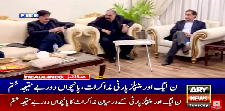 حکومت سازی کیلئے نون لیگ اور پیپلزپارٹی میں ڈیڈلاک برقرار ہے اور مذاکرات کا پانچواں دور بھی بے نتیجہ ختم ہو گیا ہے۔