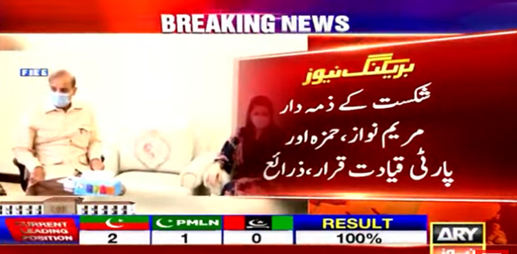 اسلام آباد : مسلم لیگ ن کے رہنماؤں وامیدواروں نے ضمنی انتخابات میں شکست کی ذمہ داری مریم نواز،حمزہ اور پارٹی قیادت پر عائد کر دی۔