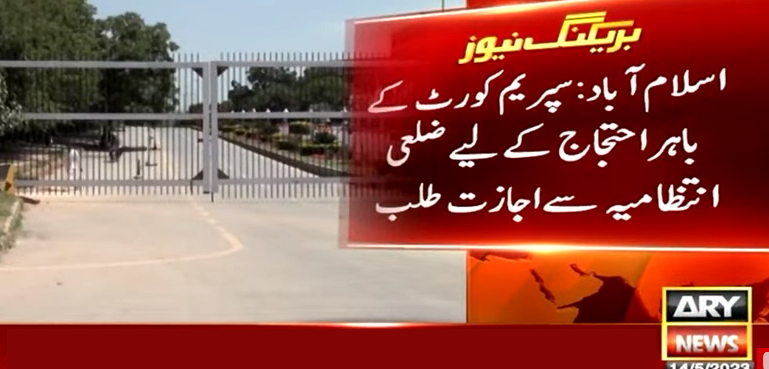 آج پی ڈی ایم کی اتحادی حکمراں جماعت مسلم لیگ ن نے سپریم کورٹ کے باہر احتجاج کے لیے ضلعی انتظامیہ سے اجازت طلب کر لی ہے اور اس حوالے سے درخواست بھی جمع کرا دی ہے۔