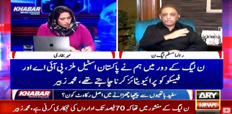 مسلم لیگ ن کے رہنما محمد زبیر کا کہنا ہے کہ اسٹیل مل کی نجکاری ہوجاتی تو اس کا فائدہ پاکستان کو ہورہا تھا۔
