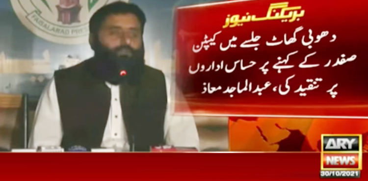 فیصل آباد: مسلم لیگ ن یوتھ ونگ کے سٹی نائب صدر عبدالماجد معاذ نے انکشاف کیا ہے کہ دھوبی گھاٹ جلسے میں کیپٹن (ر) صفدر کے کہنے پر حساس اداروں پر تنقید کی۔