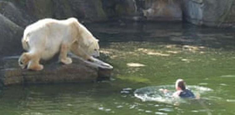 غیرملکی خبررساں ادارے کی رپورٹ کے مطابق خاتون نے ریچھ کے کھانے کے وقت پنجرے میں چھلانگ لگادی جس کے بعد پنجرے میں موجود ایک سفید ریچھ نے ان پر حملہ کرکے زخمی کردیا۔