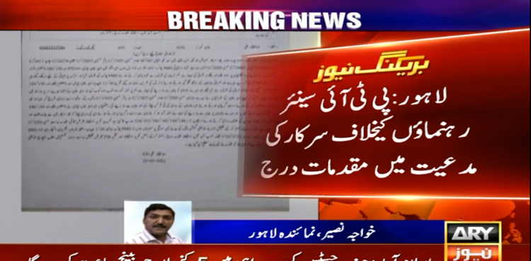 لاہور : پاکستان تحریک انصاف کے سینئر رہنماؤں کیخلاف سرکار کی مدعیت میں مقدمات درج کرلئے گئے ، رہنماؤں پر پولیس اہلکاروں پرتشدد ، اہلکاروں کو اغوا، اینٹی رائٹ سامان چھیننے کے الزامات عائد کئے گئے ہیں۔