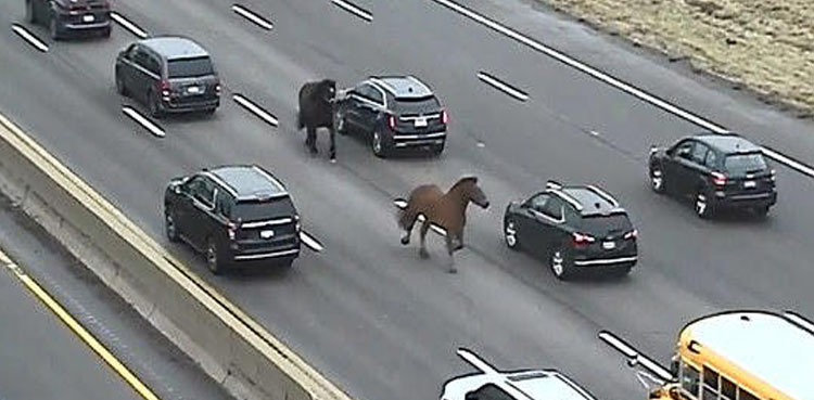 غیرملکی خبررساں ادارے کی رپورٹ کے مطابق امریکی ریاست اوہائیو میں مقامی پولیس کے دو گھوڑے اصطبل سے نکل کر مصروف سڑک پر گاڑیوں کے درمیان بھاگتے رہے۔