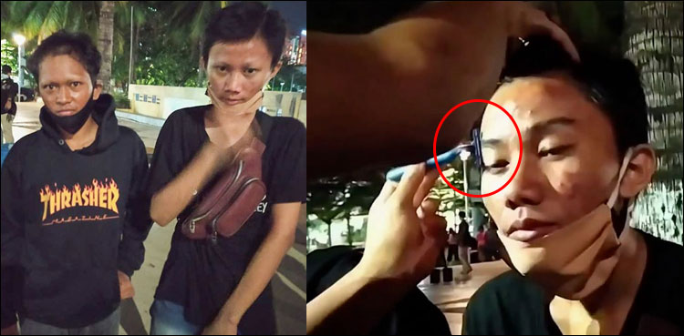 جکارتہ : انڈونیشن پولیس نے ساحل سمندر پر گاڑی سواروں سے غیر قانونی پارکنگ وصول کرنےو الے دو لڑکوں کی بھنوئیں کاٹ دی۔