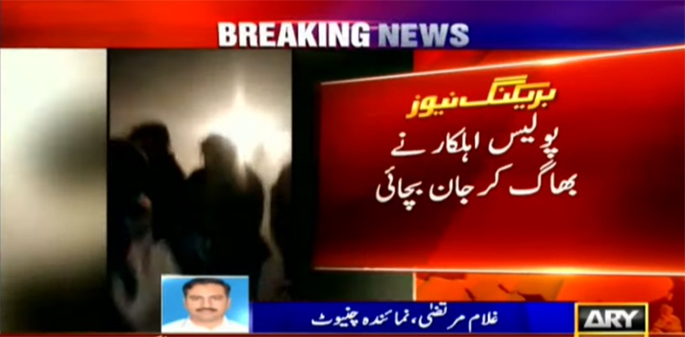 اسی دوران سڑک کھلوانے کے لیے پولیس اہلکار محمد حنیف موقع پر آیا تو خواجہ سراؤ ں نے انہیں پکڑ کر لاتوں اور گھونسوں سے تشدد کا نشانہ بنا ڈالا تاہم عوام نے ان خواجہ سراؤں کے چنگل سے آذاد کرایا۔