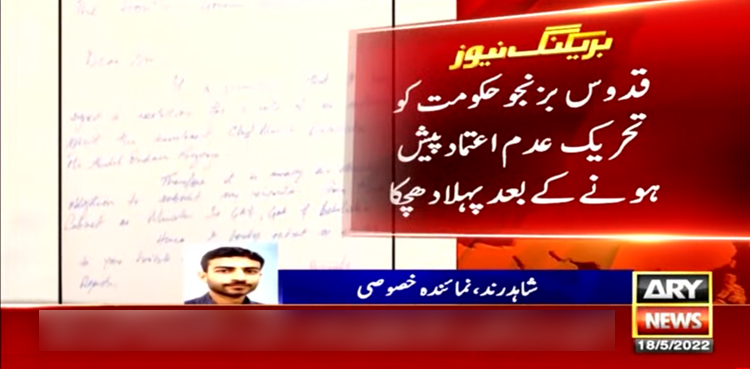 خیال رہے کہ وزیر اعلیٰ بلوچستان عبدالقدوس بزنجو کے خلاف تحریک عدم اعتماد جمع کرا دی گئی ہے جس پر 14 اراکین کے دستخط موجود ہیں۔