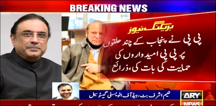 تفصیلات کے مطابق پیپلز پارٹی نے نواز شریف سے انتخابی اشتراک پر رابطہ کیا ہے، پی پی نے پنجاب کے چند حلقوں پر پی پی امیدواروں کی حمایت کی بات کی ہے۔