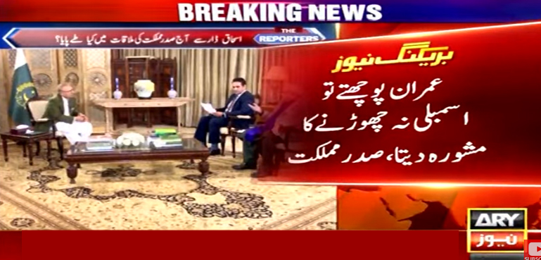 صدر مملکت ڈاکٹر عارف علوی نے کہا ہے کہ اگر عمران خان مجھ سے مشورہ کرتے تو میں انہیں اسمبلی نہ چھوڑنے کا مشورہ دیتا۔