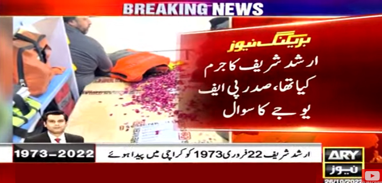 پی ایف یو جے کے صدر افضل بٹ نے کہا ہے کہ آج ملک کی صحافت کی تاریخ کا سیاہ ترین دن ہے، لوگ سوال پوچھ رہے ہیں ارشد شریف کا جرم کیا تھا؟