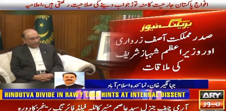 بھارتی جارحانہ رویہ، صدر آصف زرداری اور وزیراعظم شہباز شریف کی اہم ملاقات