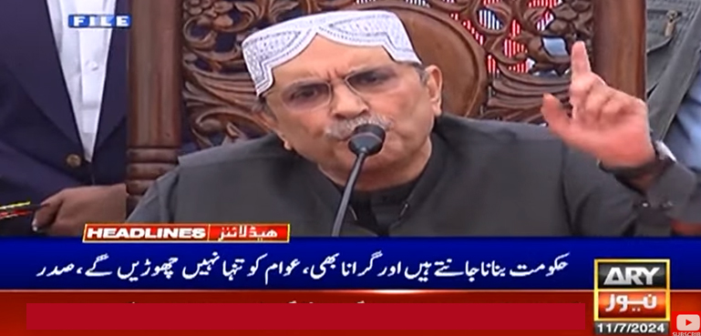 صدر مملکت آصف علی زرداری نے کہا ہے کہ نہ لیگ سے حکومت نہیں چل رہی ہے ہم حکومت بنانا بھی جانتے ہیں اور گرانا بھی آتی ہے۔