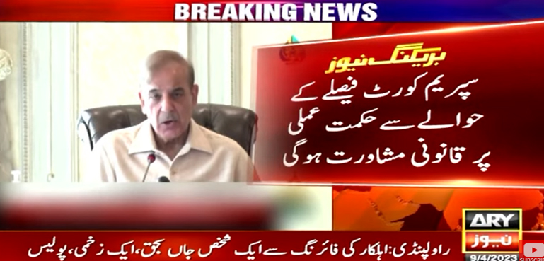 وزیراعظم شہباز شریف نے وفاقی کابینہ کا اہم اجلاس آج دوبارہ طلب کرلیا ہے جس میں سپریم کورٹ فیصلے کے حوالے سے حکمت عملی پر قانونی مشاورت کی جائے گی۔
