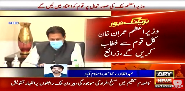 وزیراعظم عمران خان کل قوم سے خطاب کریں گے اور کالعدم تنظیم کے احتجاج کے دوران پرُتشدد واقعات کے بعد پیداشدہ صورتحال پر قوم کو اعتماد میں لیں گے۔