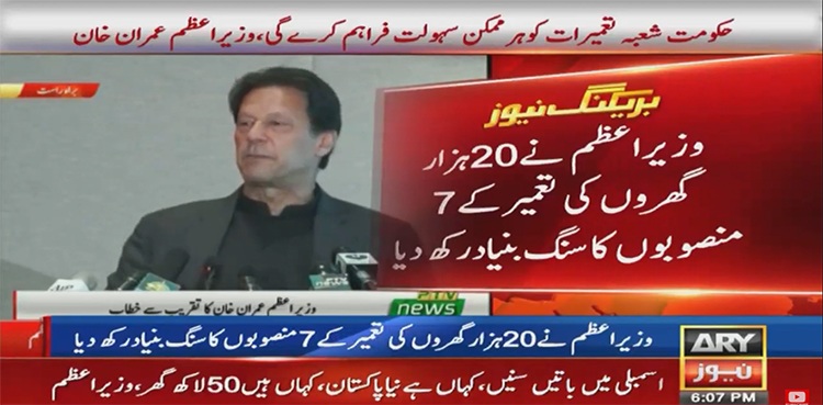 اسلام آباد: وزیراعظم عمران خان نے20 ہزار گھروں کی تعمیر کے7 منصوبوں کا سنگ بنیاد رکھ دیا۔