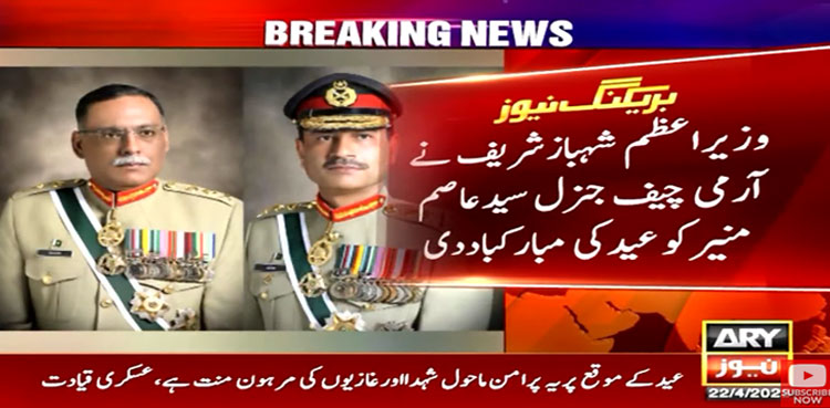 اسلام آباد: وزیراعظم شہبازشریف نے سروسزچیفس کو عید کی مبارکباد دی ہے۔