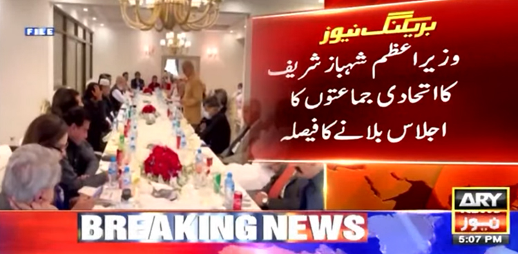 اسلام آباد: وزیر اعظم شہباز شریف نے موجودہ سیاسی صورتحال پر اتحادی جماعتوں کا اہم اجلاس طلب کرنے کا فیصلہ کرلیا۔