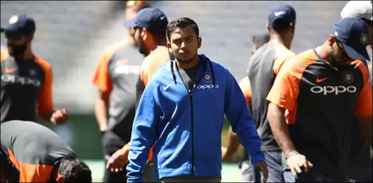 نوجوان بھارتی بلے باز پرتھوی شاہ نے گزشتہ سال ویسٹ انڈیز کے خلاف اپنے ڈیبیو ٹیسٹ میچ میں سنچری اسکور کی تھی۔
