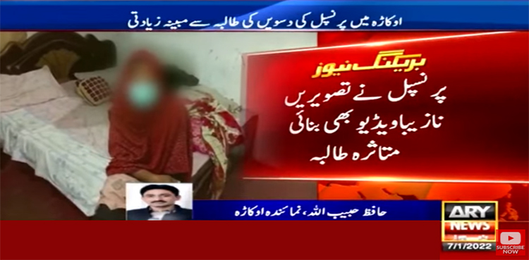 پنجاب کے ضلع اوکاڑہ میں طالبہ سے زیادتی اور بلیک میل کرنے کے الزام میں نجی اسکول کے پرنسپل کو گرفتار کر لیا گیا۔