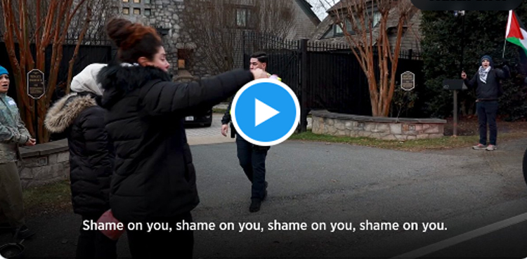 Demonstrators gather in front of Secretary of State Antony Blinken’s house in Virginia, protesting against the US policy on Gaza