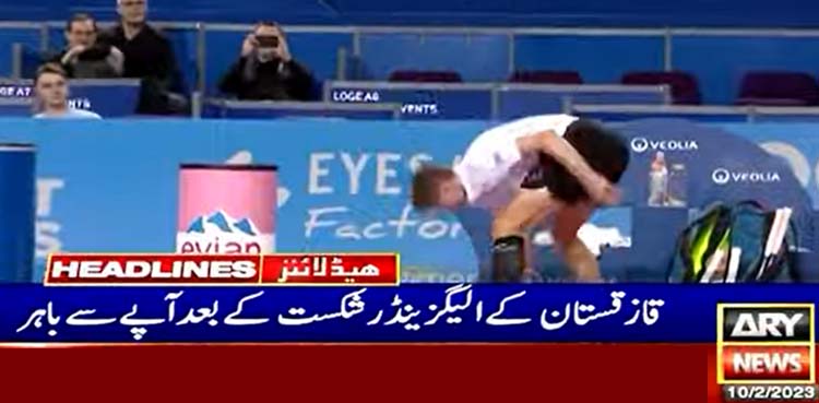 قازقستان کے کھلاڑی الیگزینڈر شکست کے بعد آپے سے باہر ہوگئے اور سارا غصہ ریکٹ پر نکال دیا۔