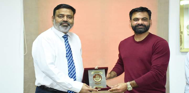قومی کرکٹ ٹیم کے سابق کپتان محمد حفیظ نے جمعہ کے روز صدر شعبہ ہیلتھ اینڈ فزیکل ایجوکیشن جامعہ کراچی پروفیسرڈاکٹر باسط انصاری کے ہمراہ وائس چانسلر جامعہ کراچی پروفیسر ڈاکٹر خالد محمودعراقی سے وائس چانسلر سیکریٹ جامعہ کراچی میں ملاقات کی۔