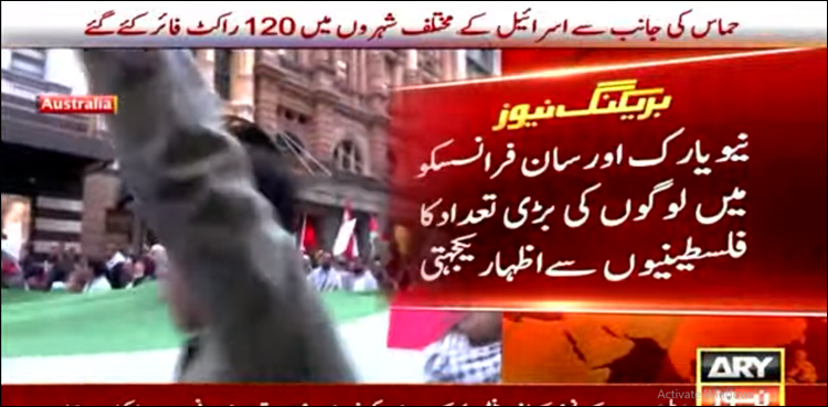 ادھر نیویارک اور سان فرانسسکو میں بھی لوگوں کی بڑی تعداد نے فلسطینیوں سے یکجہتی کا اظہار کیا، کینیڈا، اسپین، آسٹریلیا، برطانیہ سمیت اردن میں بھی صہہونی جارحیت کے خلاف ہزاروں افراد سڑکوں پر نکلے۔