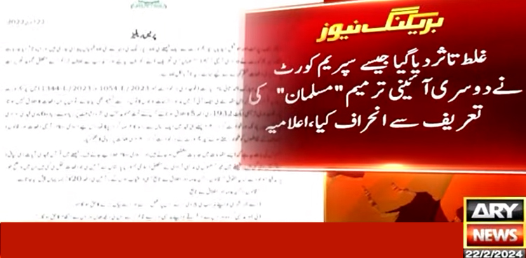 ترجمان سپریم کورٹ نے کہا ہے کہ سپریم کورٹ کے ایک فیصلےکی غلط رپورٹنگ سےکئی غلط فہمیاں پیداکی جارہی ہیں غلط تاثر دیا گیا جیسے سپریم کورٹ نےدوسری آئینی ترمیم "مسلمان” کی تعریف سے انحراف کیا یہ غلط تاثر دیا جا رہا ہے کہ مذہب کے خلاف جرائم سے متعلق دفعات ختم کرنے کیلئےکہا گیا۔
