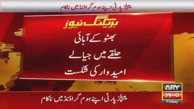 لاڑکانہ: سندھ اسمبلی کے حلقے پی ایس 11 کے ضمنی انتخابات میں پی پی کو اپنے ہوم گراؤنڈ پر شکست کا سامنا کرنا پڑا جبکہ گرینڈ ڈیموکریٹک الائنس کے امیدوار نے ساڑھے پانچ ہزار ووٹوں سے میدان مارا۔