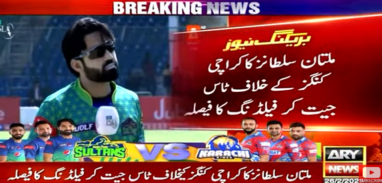 ایچ بی ایل پاکستان سپر لیگ 8 کے 14 ویں میچ میں ملتان سلطانز نے کراچی کنگز کے خلاف ٹاس جیت کر پہلے فیلڈنگ کا فیصلہ کیا ہے۔
