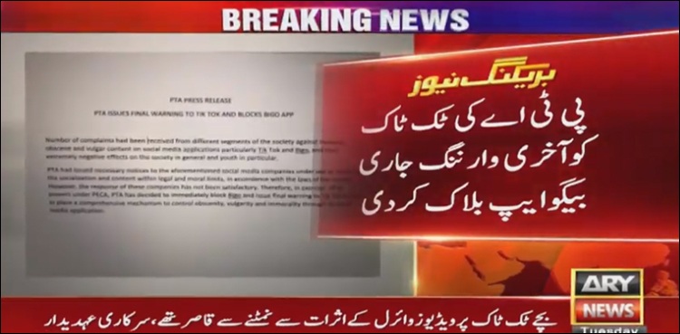 پی ٹی اے حکام نے ٹک ٹاک کو وارننگ اور بیگو ایپ کو بلاک کرنے کا باضابطہ اعلامیہ جاری کردیا۔