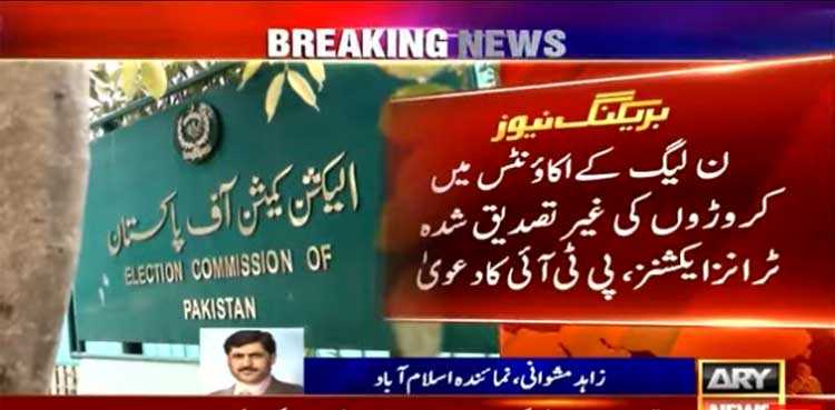پی ٹی آئی نے دعویٰ کیا کہ ن لیگ کے اکاؤنٹس میں کروڑوں کی غیر تصدیق شدہ ٹرانزایکشنز ہوئی۔