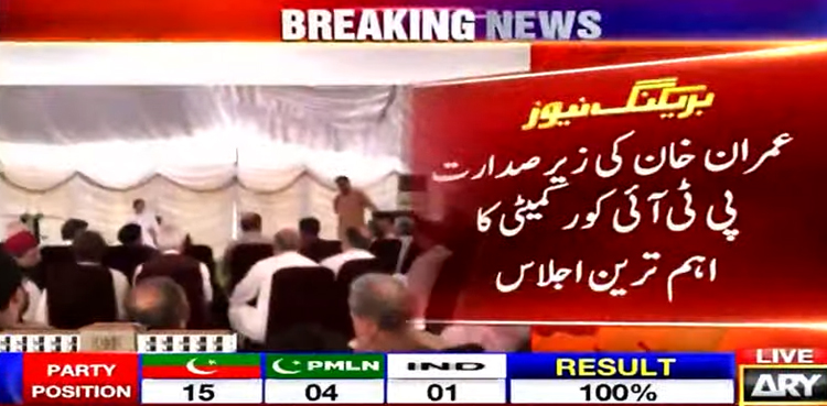 تفصیلات کے مطابق پنجاب میں ہونے والے ضمنی الیکشن میں کامیابی کے بعد چیئرمین تحریک انصاف عمران خان کی زیرصدارت پی ٹی آئی کور کمیٹی کا اہم ترین اجلاس ہوا، جس میں پنجاب اور مرکز کی سیاست سے متعلق اہم ترین فیصلے کیے گئے۔