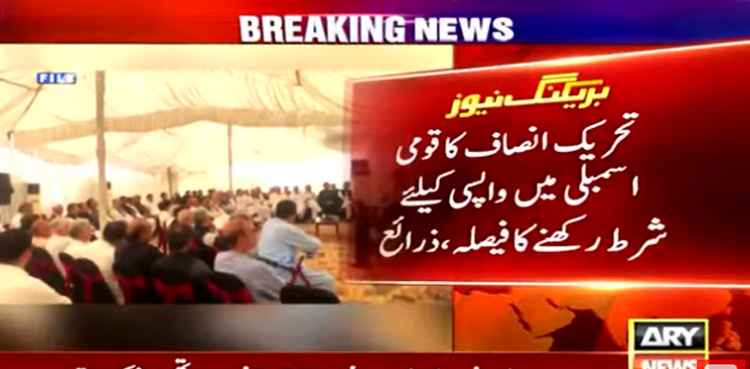 اسلام آباد : تحریک انصاف نے قومی اسمبلی میں واپسی کے لیے حکومت کے سامنے قبل ازوقت انتخابات کی شرط رکھنے کا فیصلہ کرلیا۔