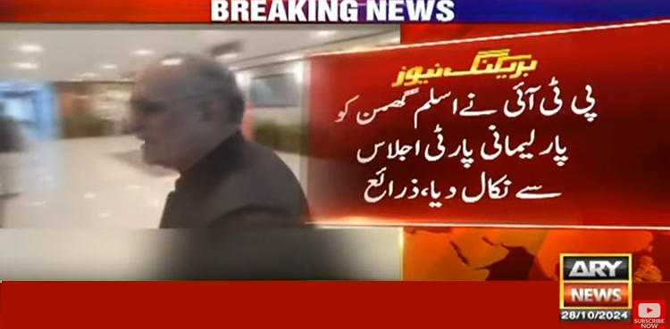 پی ٹی آئی نے مبینہ منحرف رہنما اسلم گھمن کو پارلیمانی پارٹی اجلاس سے نکال دیا۔
