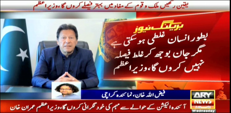 اراکین اسمبلی سے گفتگو کرتے ہوئے وزیراعظم کا کہنا تھا کہ ’بطور انسان غلطی ضرور ہوسکتی ہے مگر جان بوجھ کر غلط فیصلہ نہیں کروں گا، آپ لوگ یقین رکھیں ملک و قوم کے مفاد میں بہتر فیصلے کروں گا‘۔