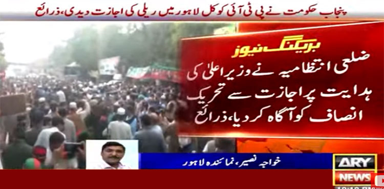 پنجاب حکومت نے پی ٹی آئی کو پپر کے دن لاہور میں ریلی نکالنے کی اجازت دیدی۔