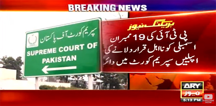 پی ٹی آئی نے 19 ممبران اسمبلی کو نااہل قرار دلانےکی اپیلیں سپریم کورٹ میں دائر کر دیں۔