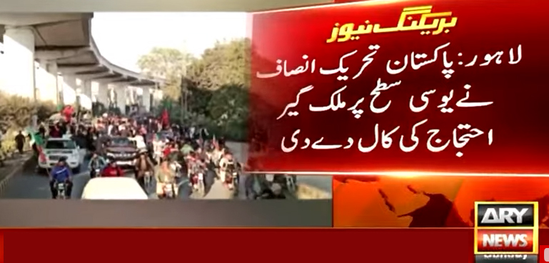 پاکستان تحریک انصاف نے یوسی سطح پر ملک گیر احتجاجی مظاہروں کی کال دے دی ہے آج شام مظاہرے کیے جائیں گے۔