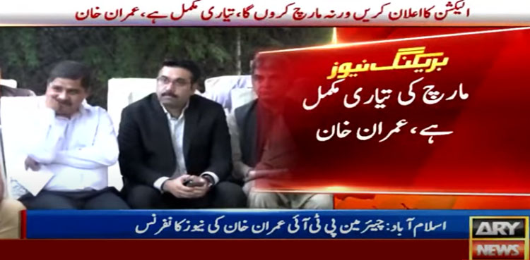 تحریک انصاف کے چیئرمین عمران خان کا کہنا ہے کہ مارچ کی تیاری مکمل ہے اگر حکومت نے الیکشن کا اعلان نہ کیا تو مارچ کروں گا۔