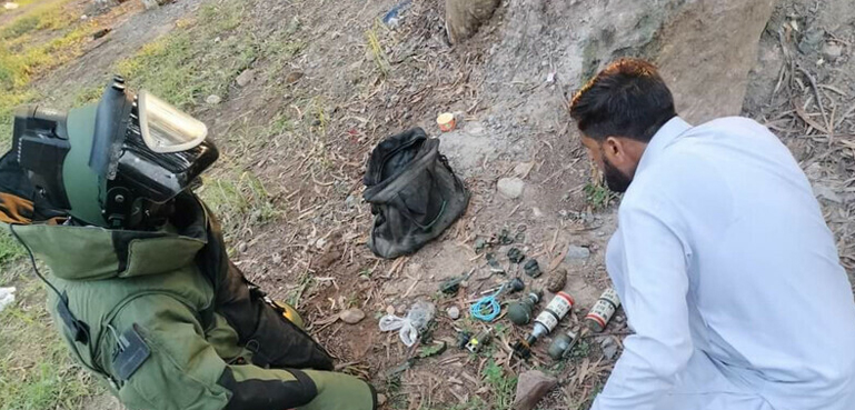 پولیس ذرائع نے بتایا ہے کہ قانون نافذ کرنے والے ادارے نے بارودی مواد ملنے والی جگہ سے ایک مشتبہ شخص کو حراست میں لے لیا ہے۔