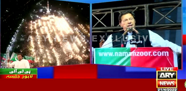 لاہور کے تاریخی مقام مینارِ پاکستان پر تحریک انصاف کے جلسے سے خطاب کرتے ہوئے عمران خان نے کہا کہ میں نے کبھی اتنی پبلک نہیں دیکھی میں نے لائحہ عمل دینا ہے غلامی قبول کریں گے نہ امپورٹڈحکومت، اب پتہ چلا سلیکٹڈ حکومت کیا ہوتی ہے بیرون ملک سےلوگوں کو سلیکٹ کیا جاتا ہے، پیسہ دے کر، ضمیرخرید کر، جوتے پالش کر کے اس حکومت کو مسلط کیاگیا۔