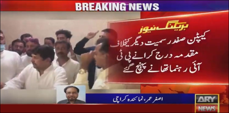 کراچی: کیپٹن (ر) صفدر کی جانب سے مزار قائد کے تقدس کی پامالی کے خلاف پی ٹی آئی رہنما مقدمہ درج کروانے تھانے پہنچ گئے۔