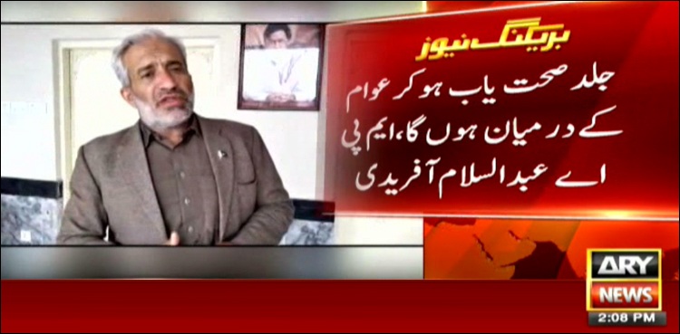 اے آر وائی نیوز کی رپورٹ کے مطابق مردان سے تعلق رکھنے والے تحریک انصاف کے رکن اسمبلی عبداسلام آفریدی کے کرونا ٹیسٹ کی رپورٹ پازیٹیو آئی۔