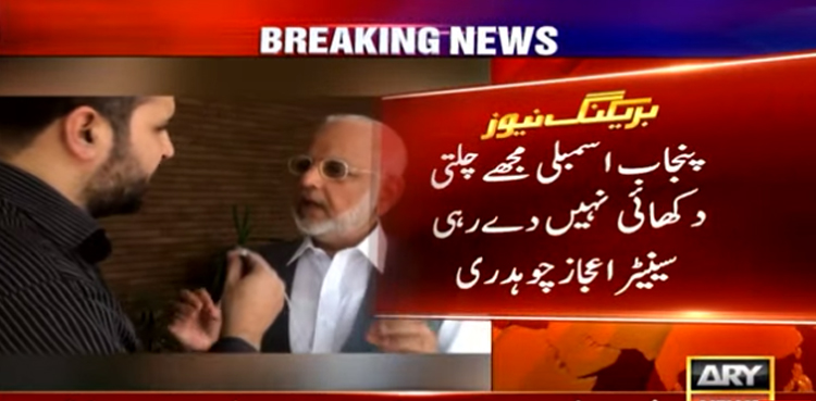تفصیلات کے مطابق سینیٹ میں پی ٹی آئی پارلیمانی لیڈرسینیٹراعجازچوہدری میڈیا سے گفتگو کرتے ہوئے کہا کہ پنجاب اسمبلی مجھے چلتی دکھائی نہیں دے رہی۔