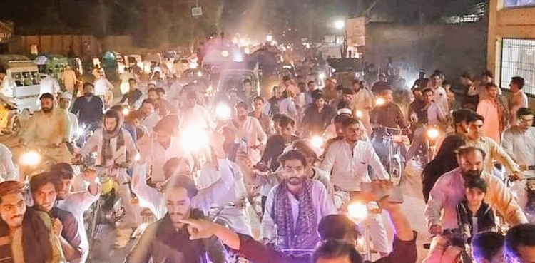 تفصیلات کے مطابق چیئرمین تحریک انصاف عمران خان کی کال پر چاند رات پر کراچی، لاہور، راولپنڈی اور اسلام آباد سمیت دیگر شہروں میں عوام سڑکوں پر نکل آئے ہیں اور حکومت کے خلاف اپنا احتجاج ریکارڈ کروا رہے ہیں۔ شرکا نے پاکستان اور تحریک انصاف کے جھنڈے اٹھا رکھے ہیں۔
