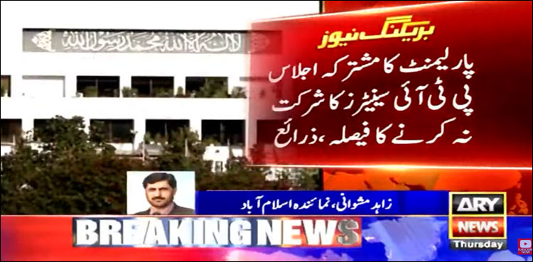 اسلام آباد: پاکستان تحریک انصاف (پی ٹی آئی) کے سینیٹرز نے پارلیمنٹ کے مشترکہ اجلاس میں شرکت نہ کرنے کا فیصلہ کر لیا۔