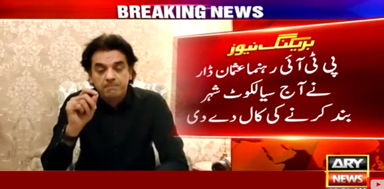 سیالکوٹ: پی ٹی آئی رہنما عثمان ڈار نے جلسے کی اجازت نہ دینے پر آج سیالکوٹ شہر بند کرنے کی کال دے دی.